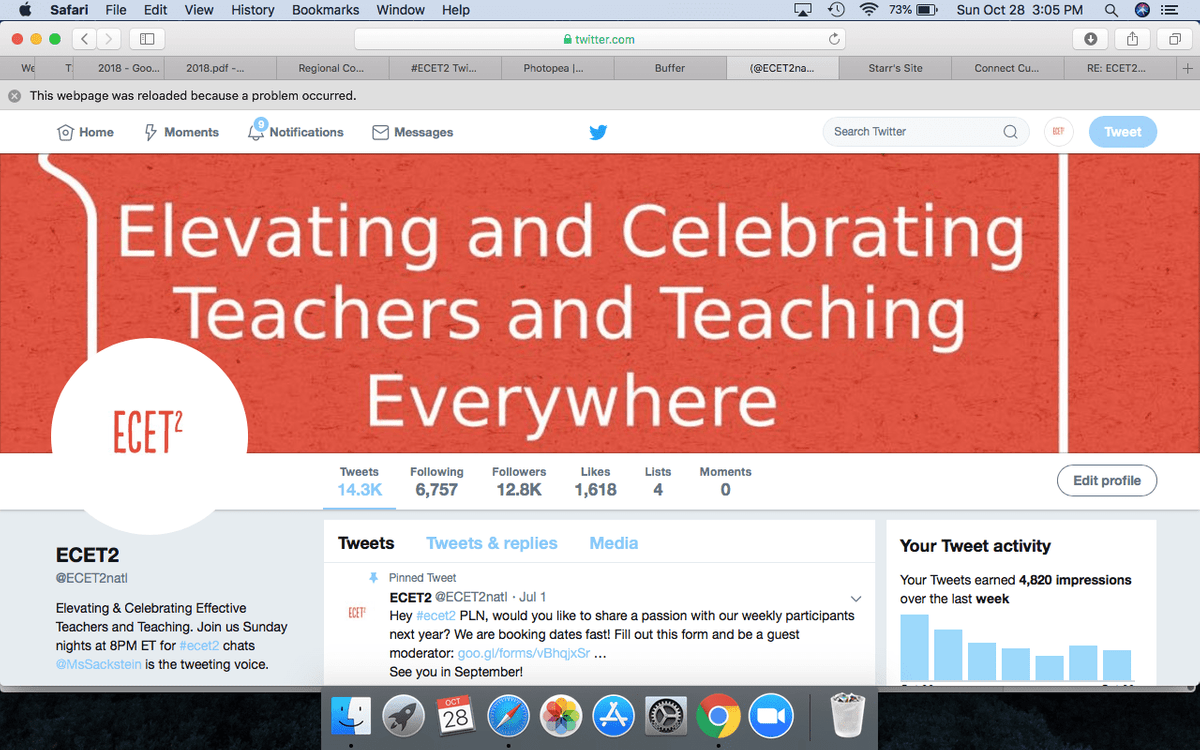 The chats take place on Twitter at 8pm Eastern Time, Sunday nights using the hashtag #ecet2.
